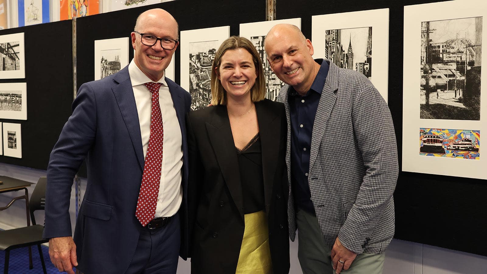 Image: Head of School Andrew Powell, Ascham Old Girl Nicola Michael (2009), and Head of Visual Arts & Design Technology Jeff Morabito