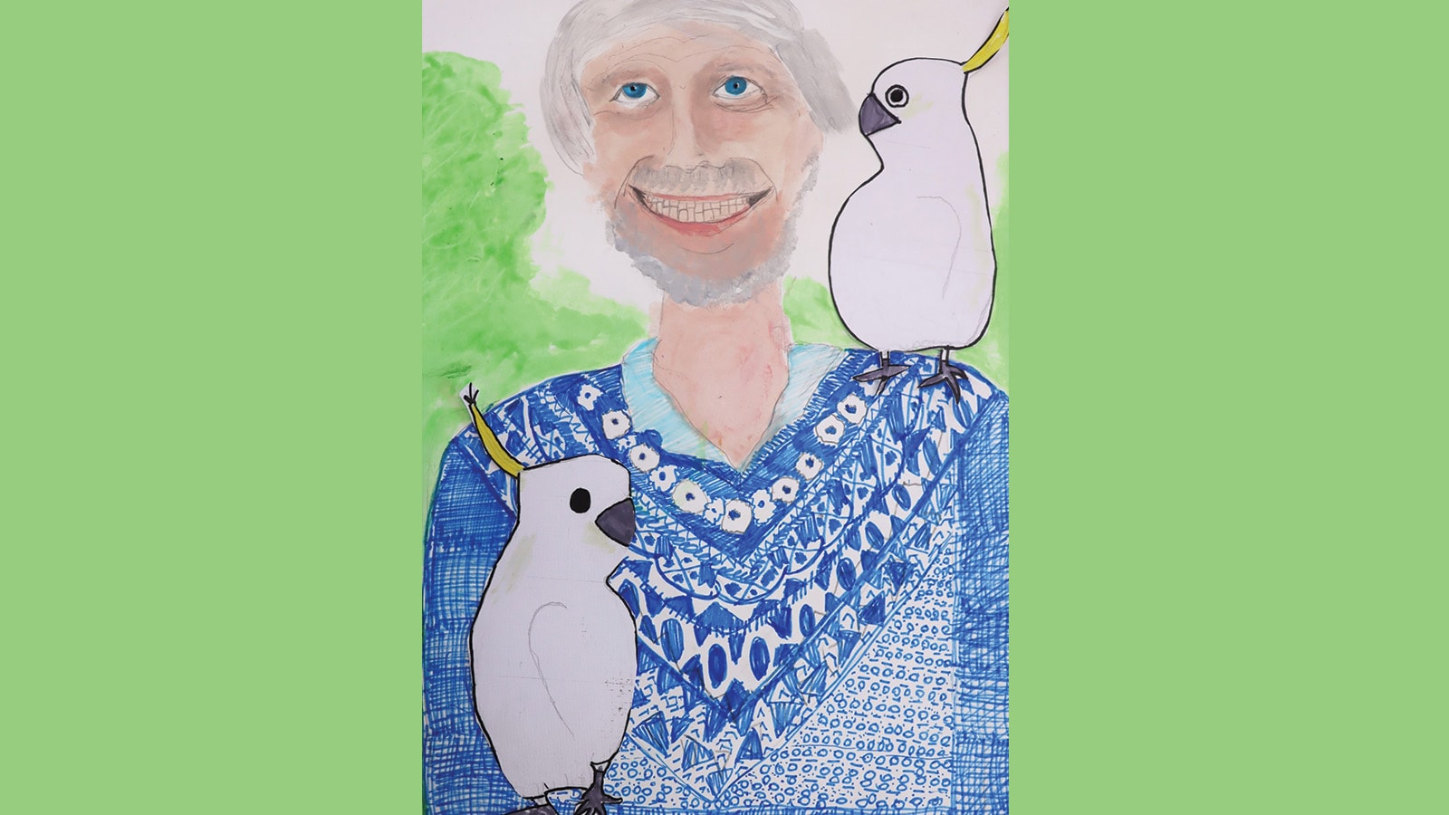 Of the 3,400 entries received by the Art Gallery of NSW, Honor’s work was one of 70 chosen by the judges for hanging. Her vibrant and uplifting portrait titled Flying Grandpa, explores her deep admiration for her grandfather. In her artist statement she explains: ‘I selected my grandpa as my subject because he guides me through my life and he is always there. He is the best! I want to show his love for birds and everyone who knows him.’