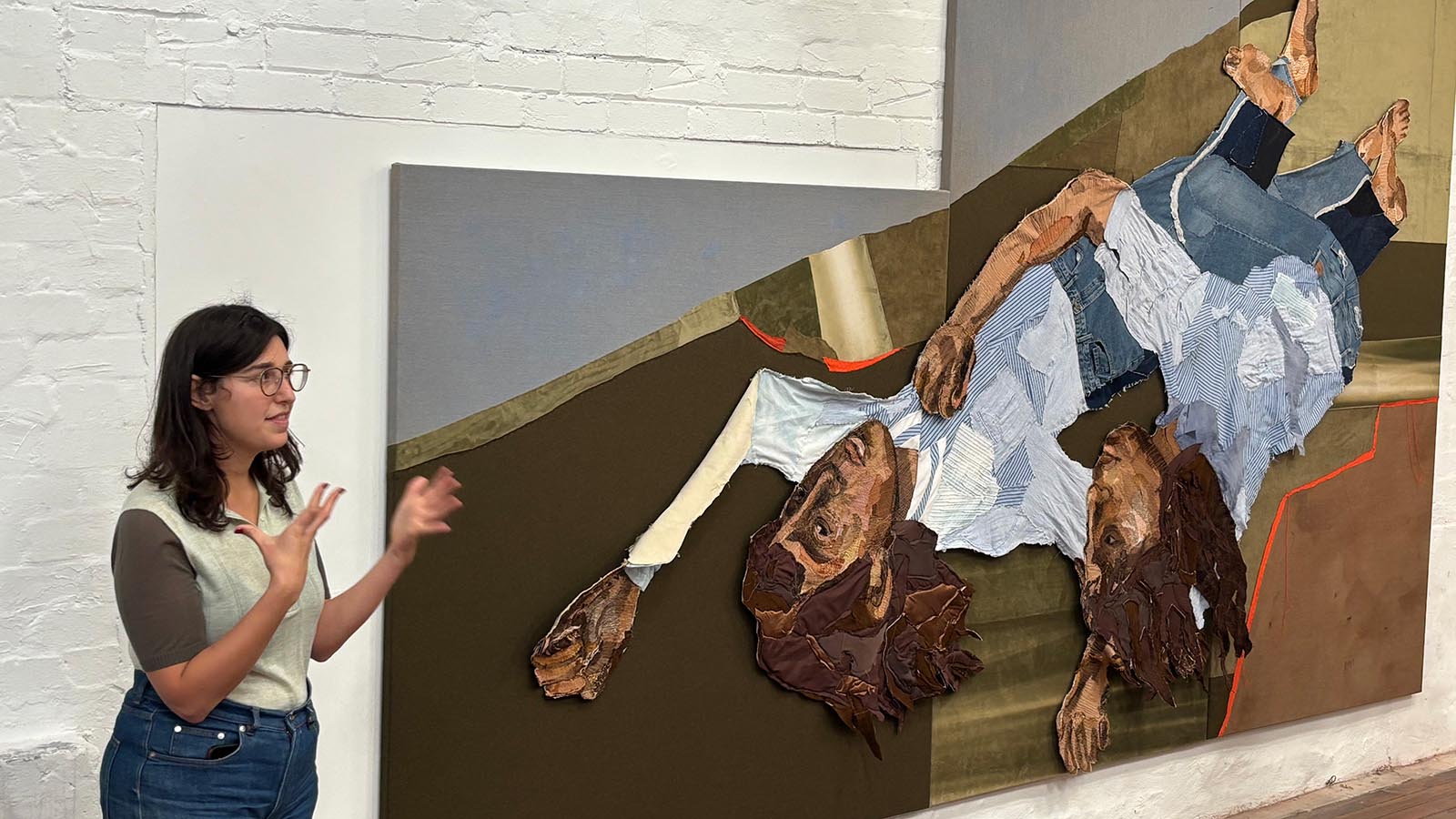 On Tuesday 2 September, our Year 11 Visual Arts students were gifted a rare visit to a working artist’s studio. Julia Gutman is a multidisciplinary artist who works predominantly with textiles but also paints, writes and makes films. Her figurative works, often large-scale, are captivating in their layered, stitched textures depicting self, others and relationships. All the materials used in her works are pre-loved, collected from op shops, family or friends. Julia’s textile and paint portrait of singer Montaigne, entitled Head in the sky, feet on the ground, won the Archibald Prize in 2023, when Julia was just 29 years old.