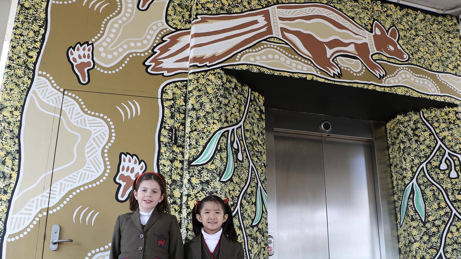 The Hillingdon Guruwara Playground, always a hub of joy, reached new heights of excitement when our students returned to School for Term 3. They were thrilled to discover the first of two murals by Gadigal artist Shane Youngberry, honouring the Gadigal Land on which our School is built. This mural, a stunning fusion of vibrant colours and intricate designs, pays homage to the brushtail possum after which the playground was named.