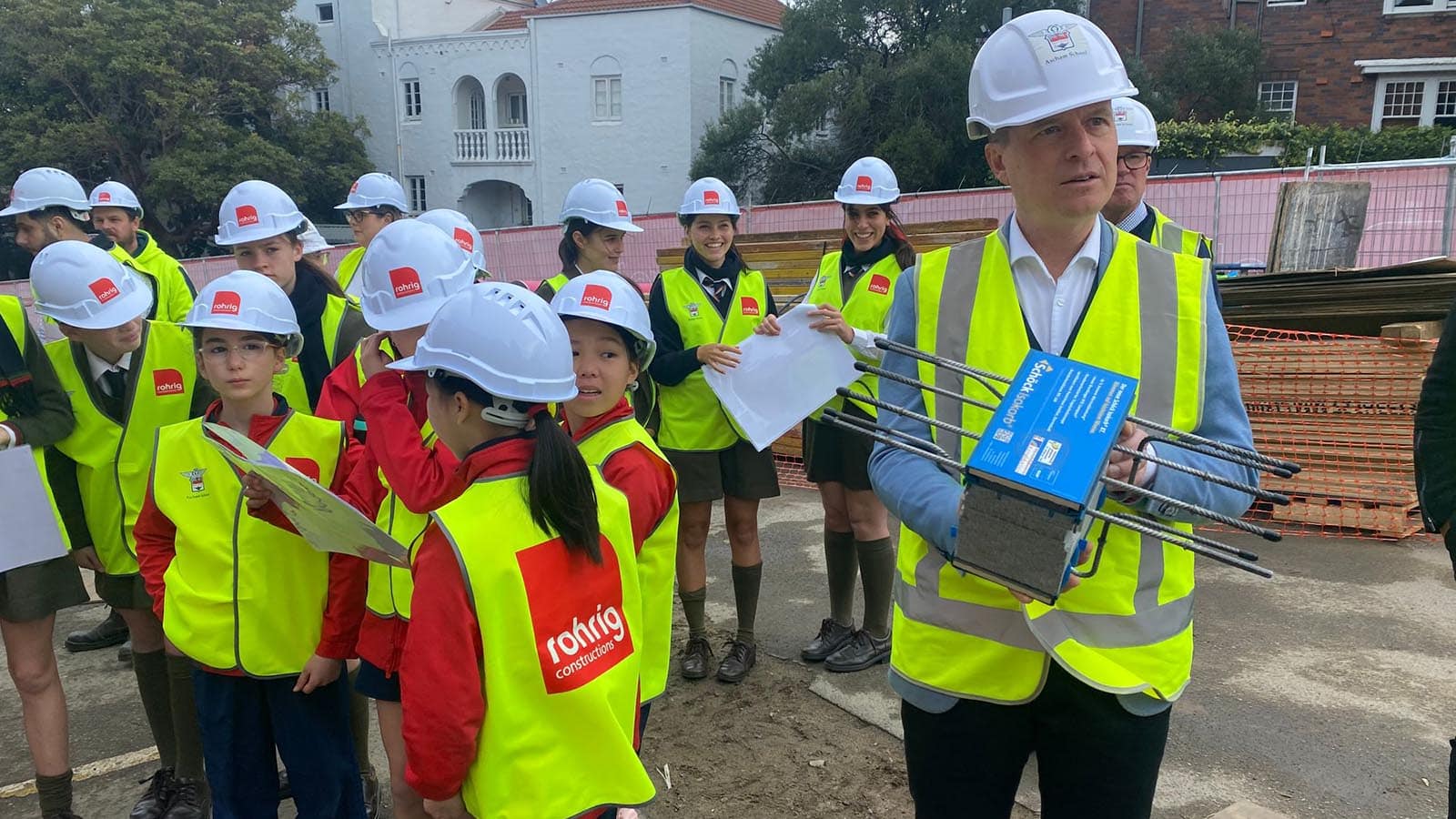 Dane from construction company Rohrig and Nick from architects BVN presented to staff, SRC students and the Year 6 Sustainability Prefects about the significant sustainability features of our Fiona Redevelopment Project.